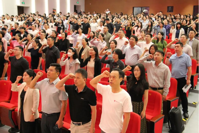 典礼尾声,2025级全体新生起立宣读入学誓词,铮铮誓言回荡礼堂上空。随后,在全场热烈掌声中,本次开学典礼圆满落下帷幕。