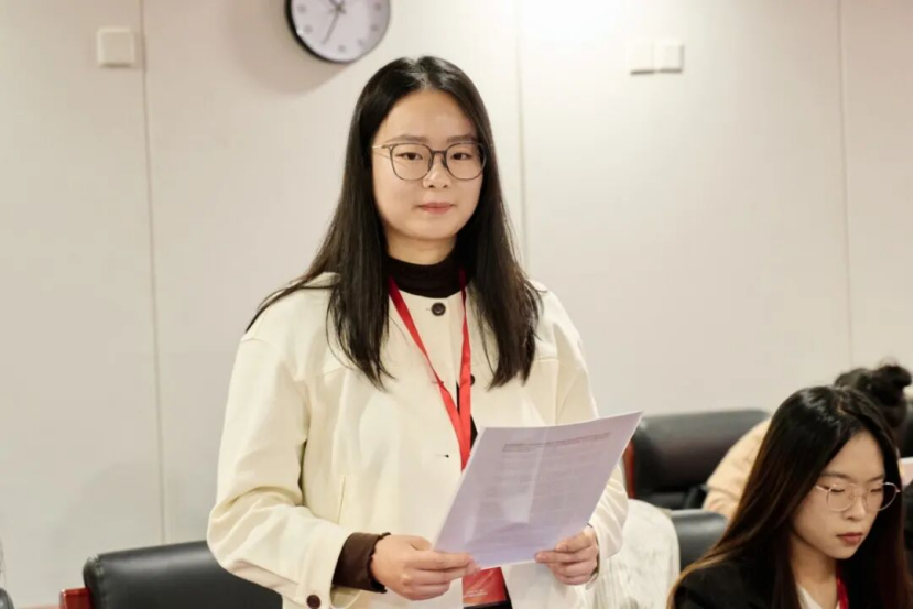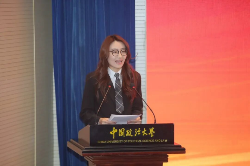 段鸥琰代表法律硕士研究生发言,她从思政引领与涉外法治能力培养出发,呼吁法律学子将个人理想融入法治中国建设大局,成为“德法兼修、胸怀家国”的卓越人才。