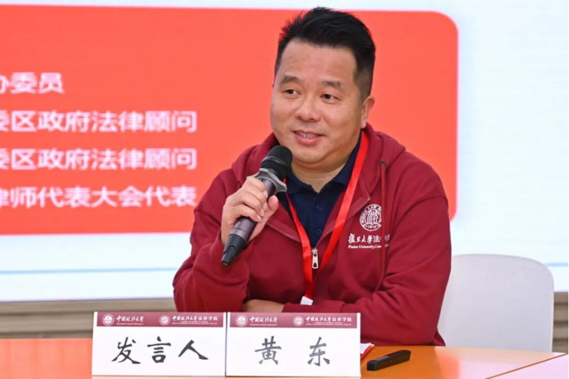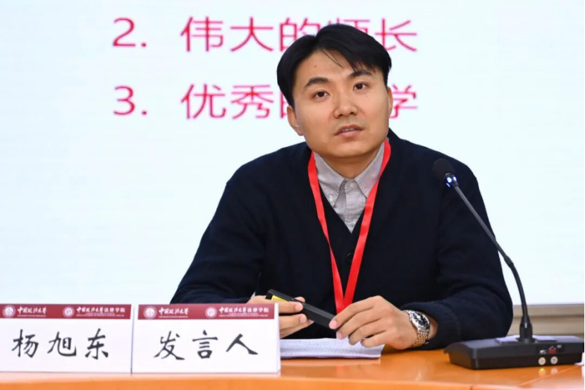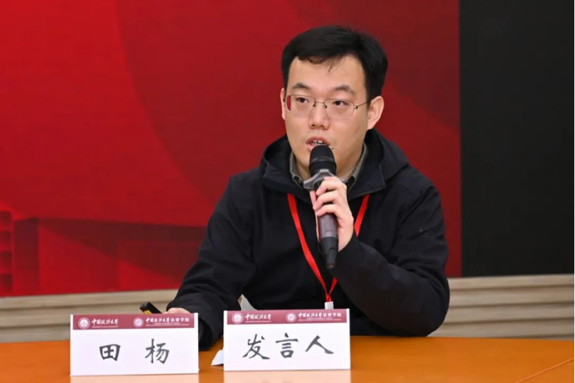 杜广普代表法律博士研究生发言。他结合自身反垄断实务经验,提出法律博士需以“跨界融合”为特色,将实践疑问转化为学术研究方向,解决法治实践中众多“真问题”。