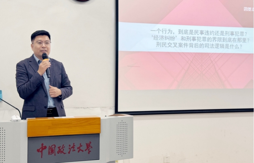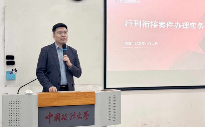 2025年11月10日及13日,中国政法大学法律学院与北京周泰律师事务所共建实务课程《刑事法前沿问题》第六讲、第七讲“刑民交叉与行刑衔接”顺利举行。两讲课程分别以“刑民交叉案件办理实务”和“行刑衔接案件办理实务”为主题,由北京周泰律师事务所高级合伙人陈鑫律师主讲,学院公法研究所副所长石亚淙老师主持。